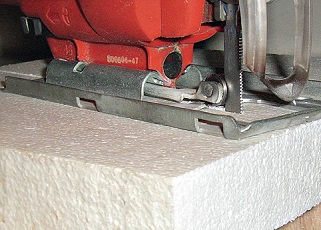 Электролобзик. Обрезка электролобзиком применяется при резке пенопласта до 10 см в толщину. Этот способ не требует затрат больших усилий.