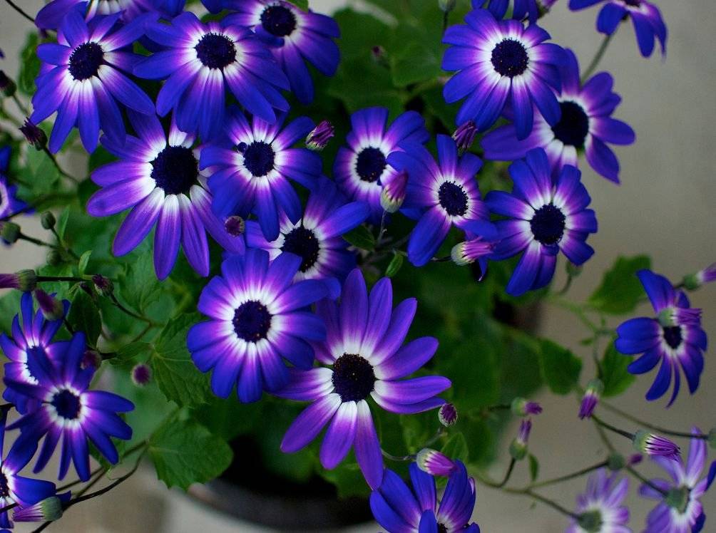 У многочисленных сортов и гибридов цинерарии кровавой соцветия-корзинки бывают:
