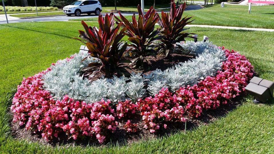 Эта белеющая в листве красавица способна оттенить и высокие и яркие растения: красные канны и пеларгонии, фиолетовый шалфей. Цинерария не играет доминирующих ролей. Просто серебристая окантовка делает более заметными другие растения.