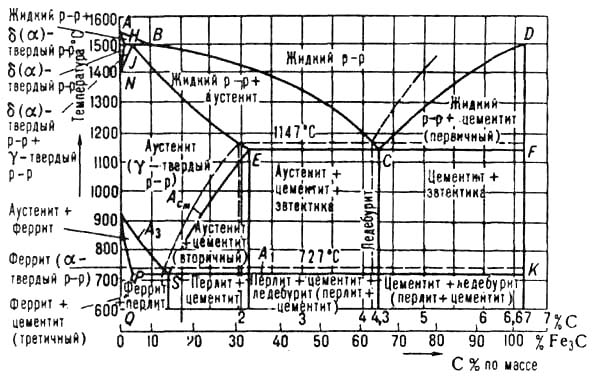 По диаграмме на рис. 3 можно проследить за изменениями структуры трех разных марок стали при нагревании: