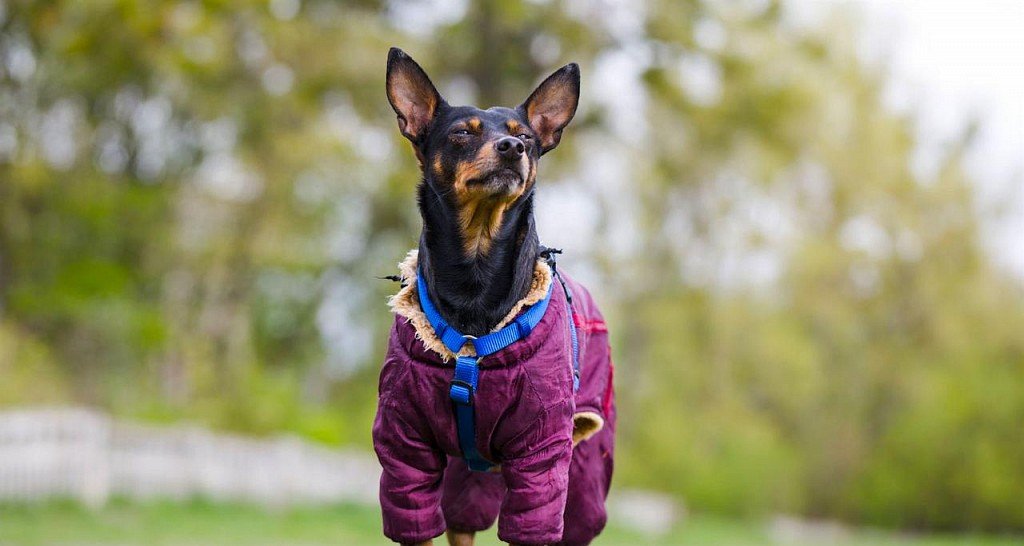 В нарядах карликовому пинчеру не должно быть тесно. Идеальным вариантом будет комбинезон (более закрытый у девочек, с открытым животом у мальчиков). Если на улице суровая зима, обязательным предметом гардероба станет и шапочка. Некоторые используют поверх комбинезонов куртки с капюшонами, которые также хорошо защищают голову от переохлаждения.