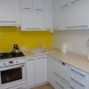 На фото интерьер кухни-гостиной, оформленный угловым диваном желтого оттенка.
