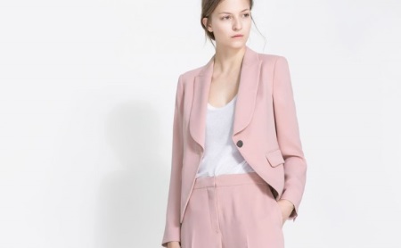 Цвет пудры в одежде хорош не только для блузок и платьев. Например, юбка или брюки такого цвета, даже при самом строгом покрое, любой офисный лук сделают нарядным и торжественным.