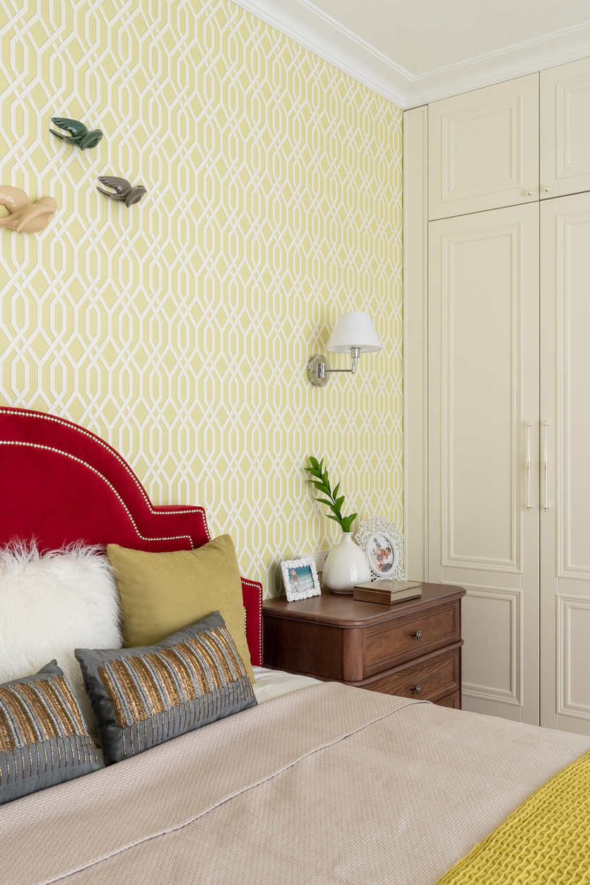В таком случае лучше выбрать приглушенный оттенок или попробовать использовать красный цвет на одной стене либо за спиной кровати, либо на стене с большими окнами, чтобы разбить интенсивный цвет. Следует быть осторожными с использованием мебели из дерева в комнате с красными стенами, так как она может смотреться вычурно.