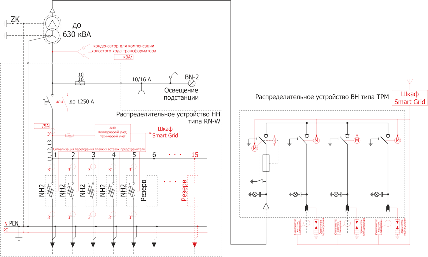 - Красным цветом обозначено дополнительное оснащение подстанции.
