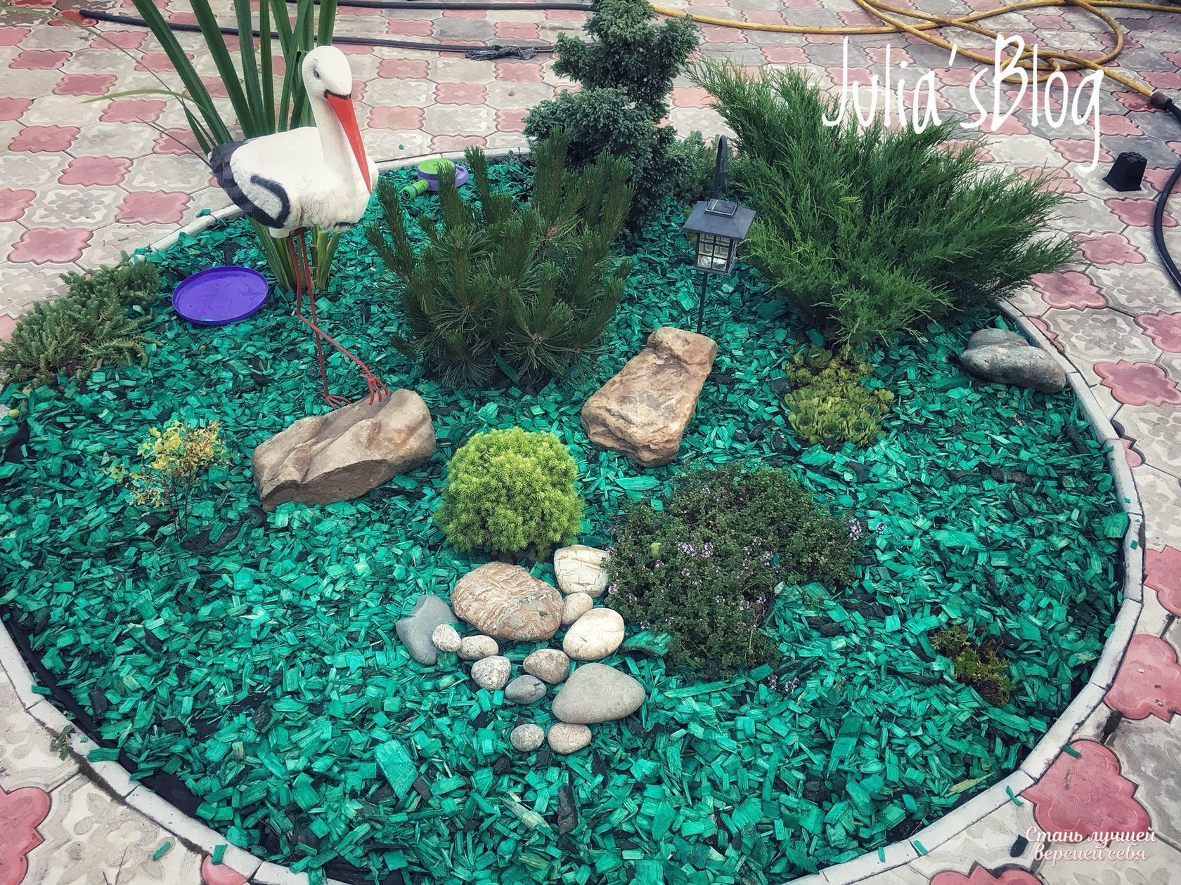 Она просто трансформировалась в хобби – клумбы, вазоны и так далее. Только вот проблема сорной травы не отпала, а мы ещё и жители Черноземья – здесь все растёт, как на тех самых дрожжах. Так вот я понимала, что бегать с ядом, типа «Раундап» я не хочу, чтобы каждую соринку вывести, но что же тогда. И наконец нашла для себя альтернативу всему – декоративная щепа, и это моя первая дачная хитрость или полезный совет, что можно сделать своими руками, фото мои вы видите. (Как выглядела клумба в прошлом году с другим цветом смотрите в этом посту).