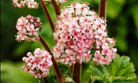 - Дармера — травянистый многолетник, принадлежит семейству Камнеломковые. Родиной этого растения считают леса Америки, откуда произошли многие популярные цветы и кустарники, которые впоследствии окультурились и заняли прочное место в наших садах и на клумбах.
