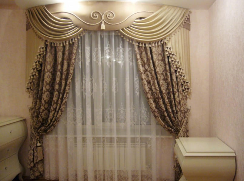 Украсить шторы свагами. Они имеют большое количество красивых складок, плавно свисающих со штор.