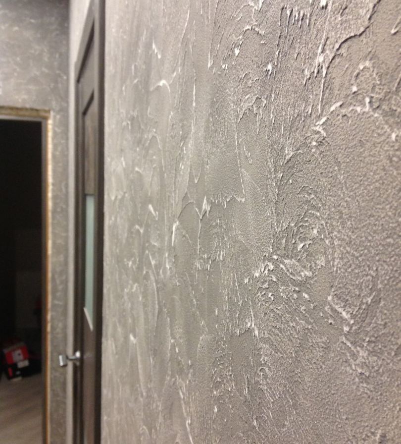 - структурная. Поверхность при использовании такого состава испещрена многочисленными бороздками и оригинальными рисунками. Эффект достигается благодаря частицам, находящимся в смеси;