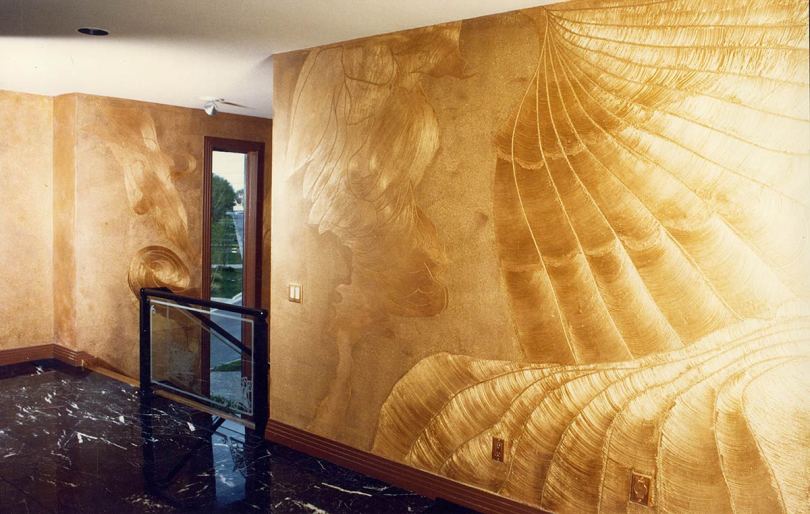 Венецианская декоративная штукатурка представляет собой покрытие с гладко-зеркальной поверхностью, а также с рисунком, которые имитирует мрамор. Такая штукатурка состоит из пыли ценных пород камней, акриловых смол и полимеров, которые являются связующими веществами. Венецианская штукатурка невероятно долговечная. К тому же вы вполне сможете выполнить точечный ремонт. Такая штукатурка может быть выполнена в золотых, перламутровых и серебренных оттенках.