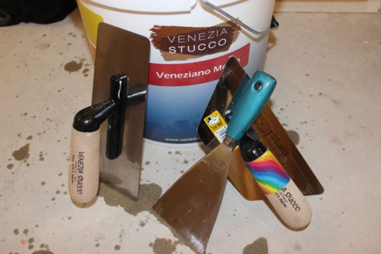 - Первый слой служит основой для декоративной отделки. Его наносят при помощи шпателя или специальной венецианской кельмы (слой должен быть ровным и аккуратным).