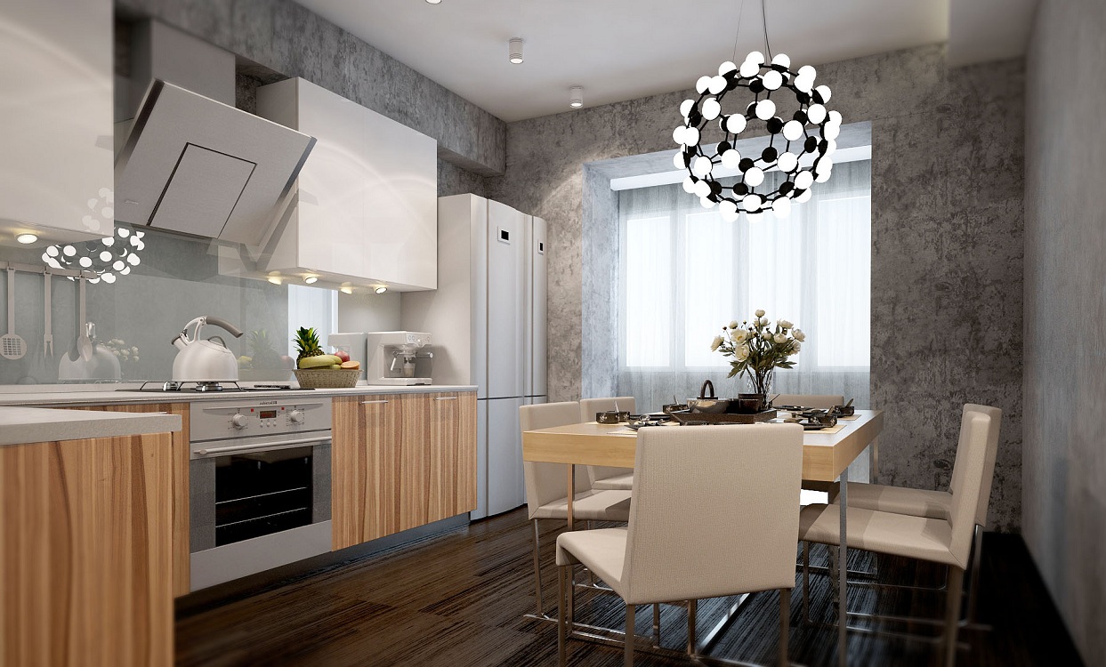 Опытные специалисты советуют использовать для отделочных работ в кухонном помещении акриловую штукатурку. Она позволяет легко проводить влажную уборку, уберечь стены от воздействия жира, повышенных температур.