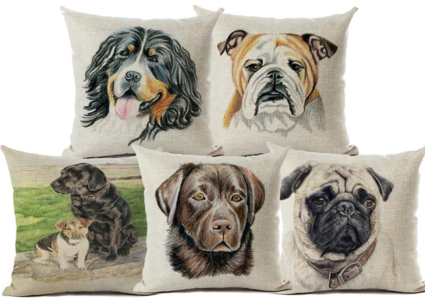 Эти подушки имеют свою стандартную квадратную форму, но выглядят как собаки: