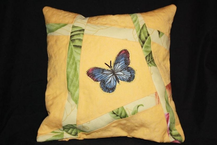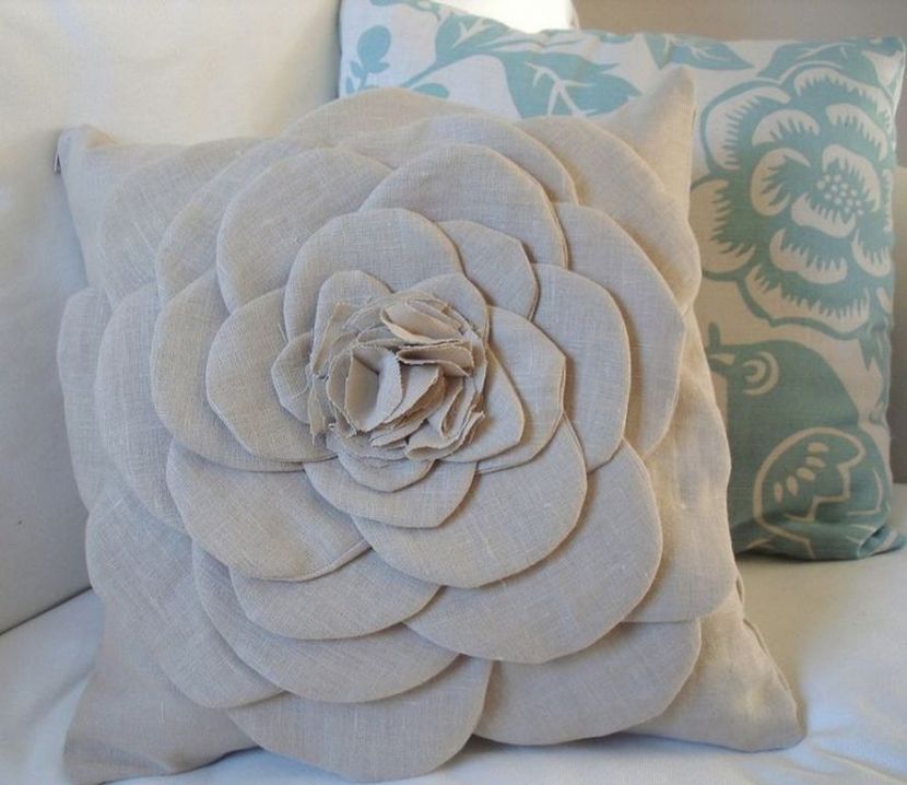 Такой вариант подушки можно украсить аппликацией, вышивкой или при помощи любой художественной техники.