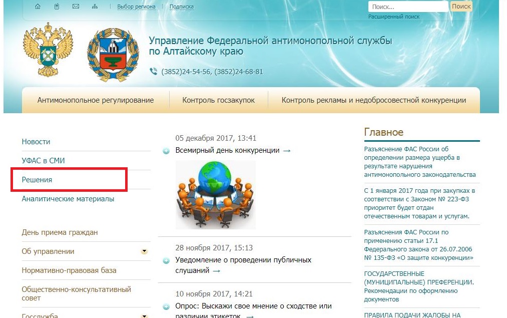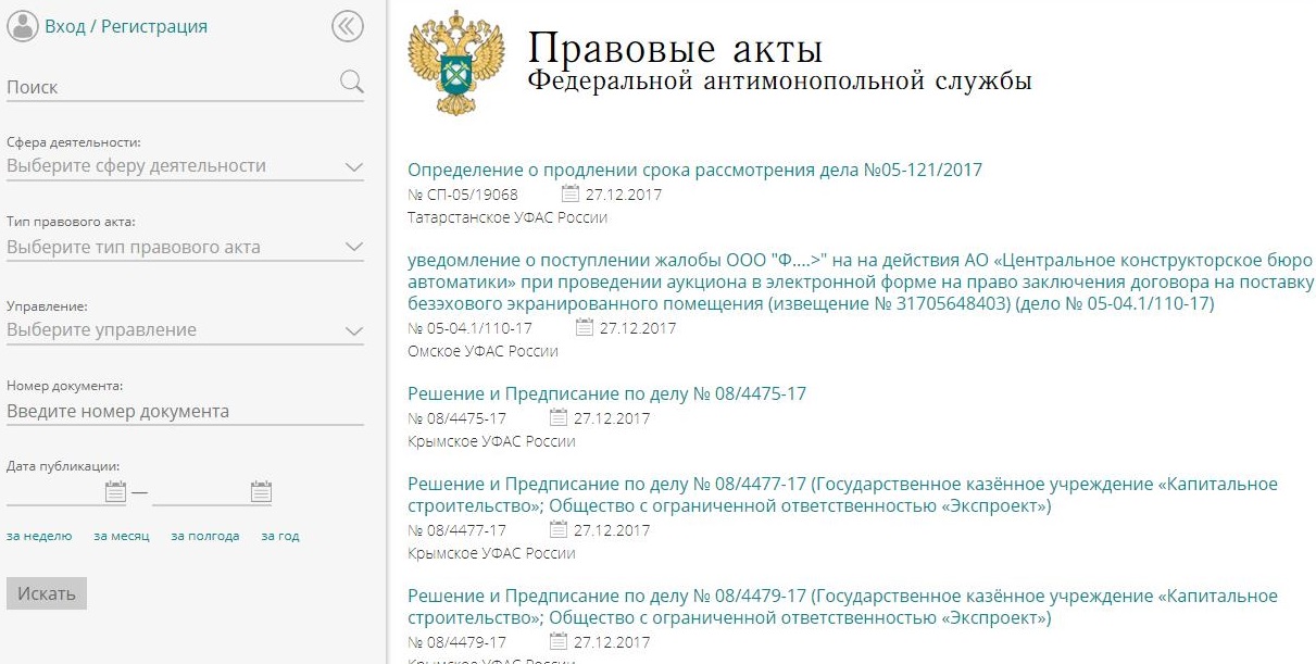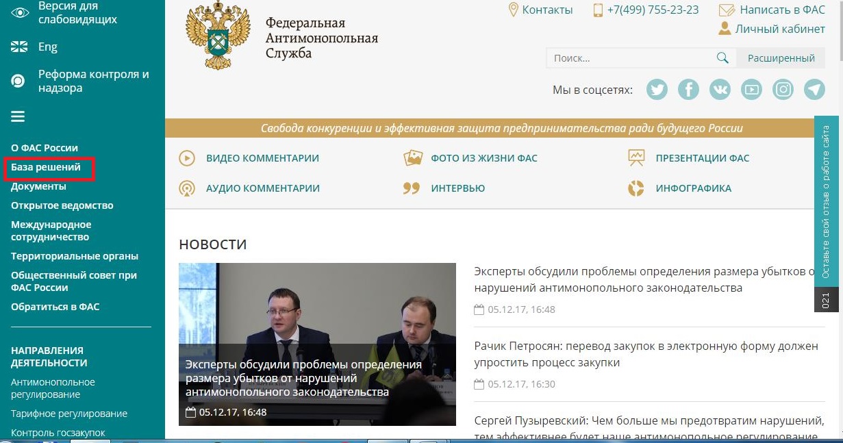 На официальном сайте антимонопольной службы на главной странице доступен раздел «База».