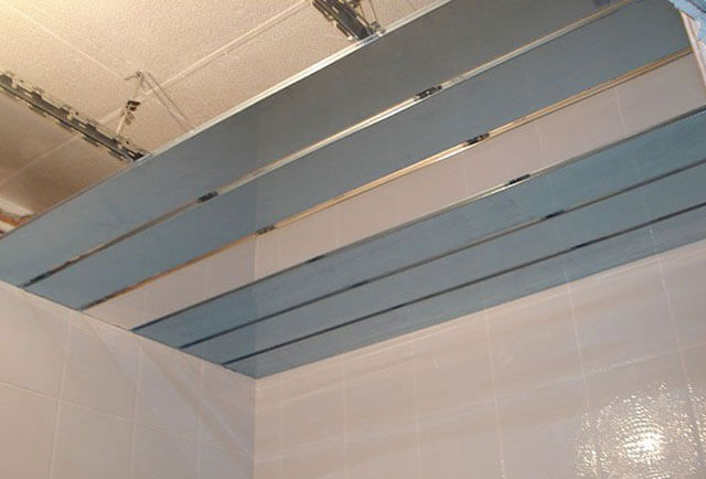 Замена реечного потолка чаще производится в ванной комнате. В этом помещении конструкция регулярно подвергается воздействию влажности и повышенной температуры воздуха.