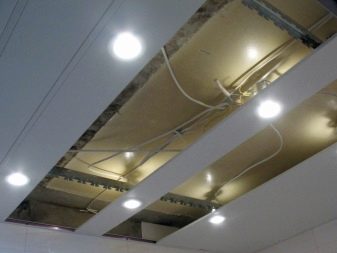 Если ванная комната оснащена точечными светильниками, то не предусматривается полная замена потолочной конструкции. Достаточно разобрать модули с края до места светильника или снять только те рейки, которые закрывают доступ к точечному светильнику. Частичный демонтаж можно выполнить только в неглухих конструкциях. Специалисты рекомендуют в этом случае снимать рейки по центру конструкции, если между ними есть декоративные полосы.