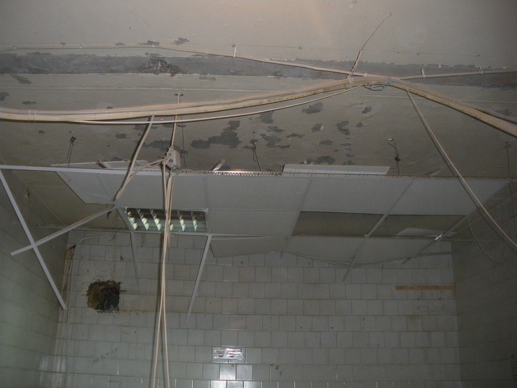 Перед тем как снять реечный потолок, выполняем демонтаж встроенных и навесных светильников. Для начала нужно обесточить приборы, отключив электроснабжение помещения. После этого приступаем к снятию точечных встроенных светильников.