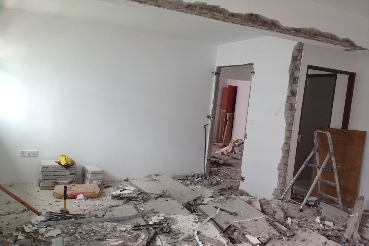 Демонтаж межкомнатных перегородок в панельных домах чаще всего сводится к разрушению бетонных стен. Это необходимо для объединения кухни и столовой, либо для создания просторной гостиной из лишней маленькой спальни и зала. Для работы используют болгарку, качественный перфоратор, отбойный молоток.