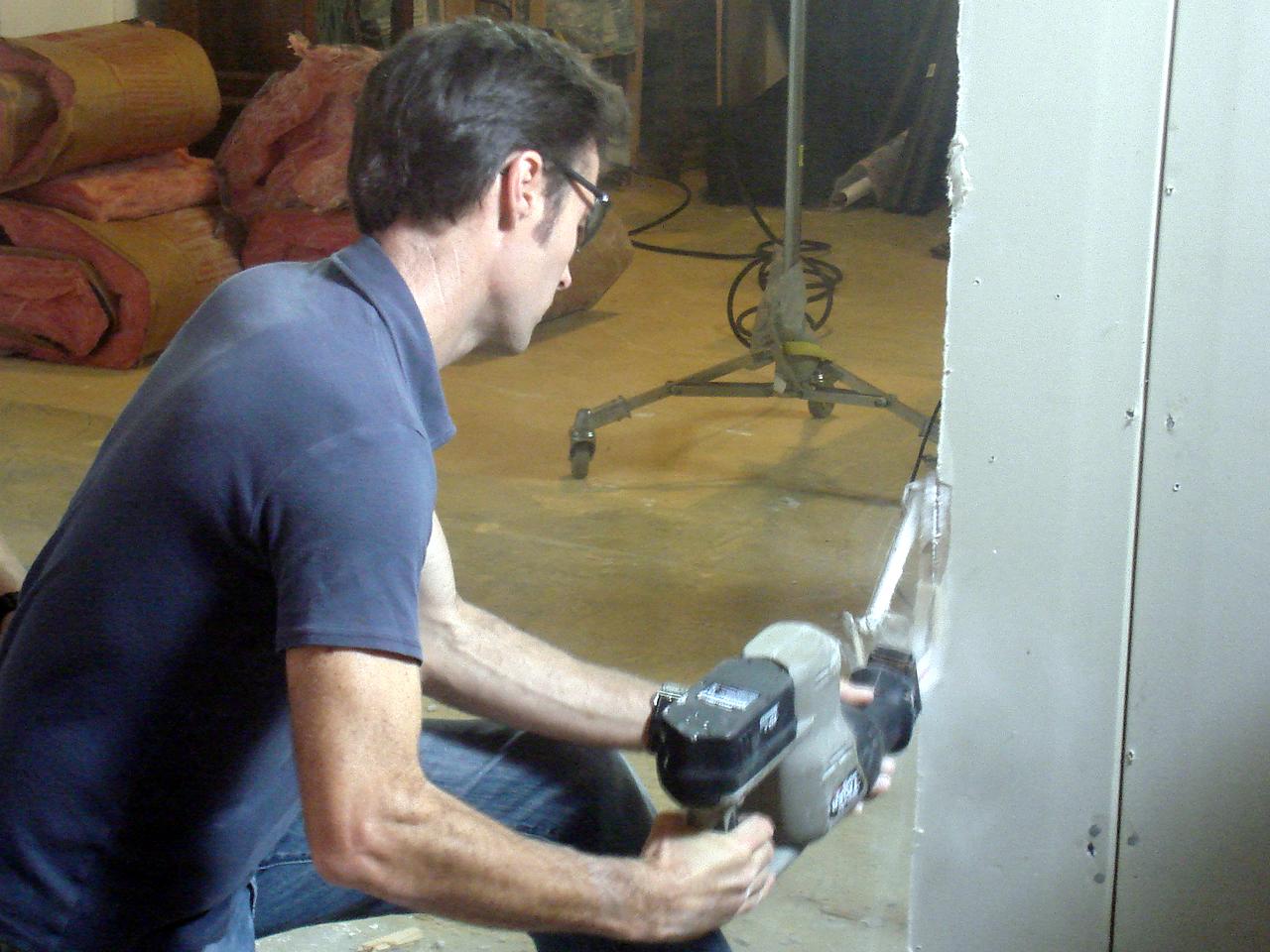 Демонтаж стены из гипсокартона. Этот вид простенков демонтируется вообще просто – гипс крошится на мелкие части посредством небольшого молотка. После того как гипсокартон будет снят с каркаса, последний просто разбирается посредством шуруповерта.