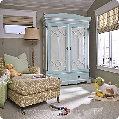 Стандартный набор мебели можно разнообразить с помощью корзин и сундуков для игрушек, винтажных стульчиков и кресла-качалки для уютных вечеров с мамой. Небольшие пеналы, напоминающие по форме буфет, прекрасно подойдут для хранения канцелярских принадлежностей и книг.