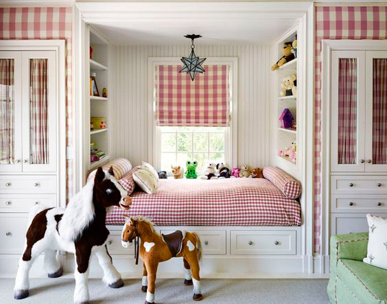 Обилие комнатных цветов в горшках или любой другой посуде, плетеные контейнеры и корзинки для игрушек придадут комнате больше деревенского колорита.