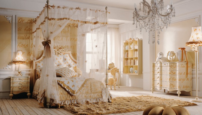 Комната девочки, выдержанная в стиле прованс, выглядит элегантно и благородно. Ее отличительными чертами является наличие следующих элементов: