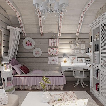 Это направление гармонично совмещает в себе деревенскую романтику, нежность и уют. Оно подойдет для обустройства комнаты для девочки дошкольного возраста или для подростка. Главное, при проектировании дизайна посоветоваться с ребенком и учесть ее личные пожелания и предпочтения. У нас также есть отдельная статья, где подробнее разбирается вопрос о дизайне детской комнаты для девочки.
