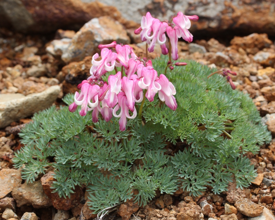 Дицентра исключительная (Dicentra eximia) — низкий кустарник 20 см высоктой, листья схожи с листьями папоротника. Цветет этот вид дольше остальных.