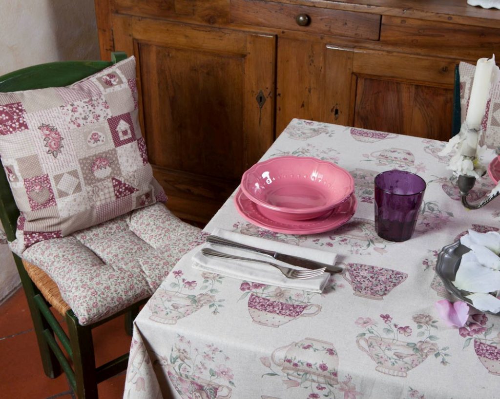 Всевозможные подушки, скатерти, пледы, коврики, покрывала, шторы имеют огромное значение для интерьера в стиле Прованс. Ткани обычно выбирают натуральные — лён, хлопок, цвета – светлые, узоры – цветочные мотивы, полоска, клетка.