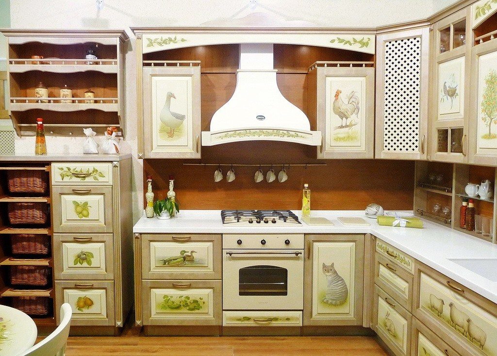 Декупаж на поверхностях шкафчиков идеально впишется в стилистику прованса