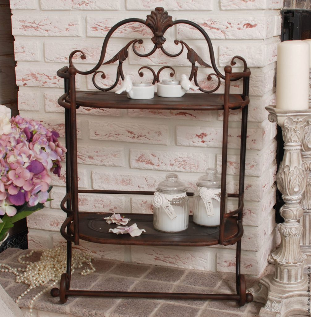 Для стиля французского кантри характерно наличие кованых элементов. Если вы обладаете необходимыми навыками, можно создать кованые полочки, крючки, подставки или ножки для мебели. Если нет — можно поступить проще, например, своими руками сделать витиеватую подставку для вазы, используя обычную алюминиевую или медную проволоку