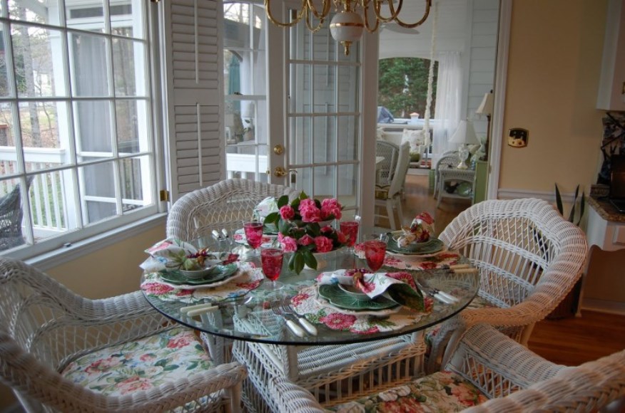 Изящная плетеная мебель, светлые тона, отсутствие мрачности и легкость меблировки — основные принципы дизайна