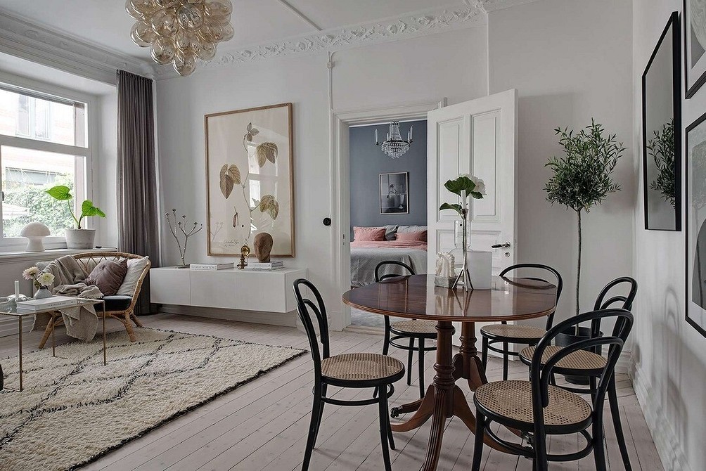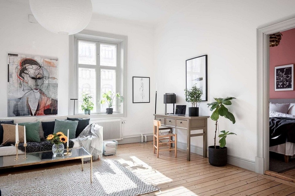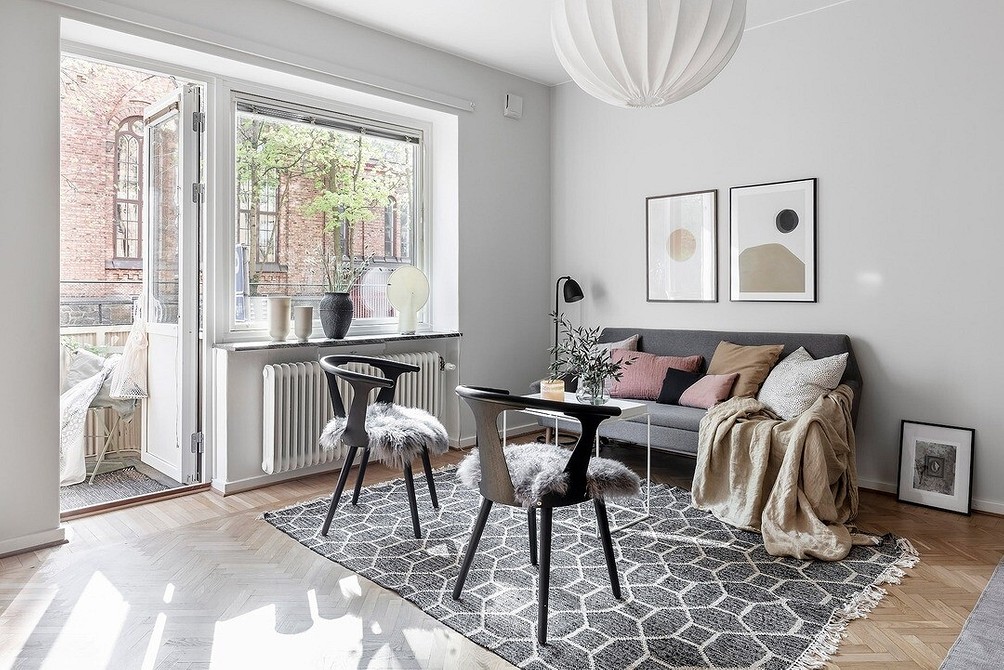 - Чем меньше метраж, тем мельче допускаются в нем принты. Огромная картина или масштабный принт на обоях и текстиле визуально сделают комнату меньше. Откажитесь от этих деталей.