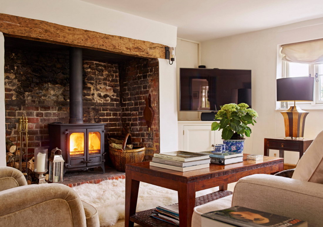 - Несомненно, очаг будет центром всей комнаты, поэтому стоит подбирать мебель, декорации, которые наилучшим образом будут подчеркивать уникальность. Подойдут всевозможные фигурки, статуэтки, фоторамки, декоративные подушки.