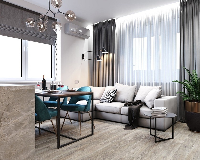 Если принято решение не разрушать стены, необходимо позаботиться о создании просторной и функциональной гостиной. Каждая деталь должна работать на освобождение пространства.