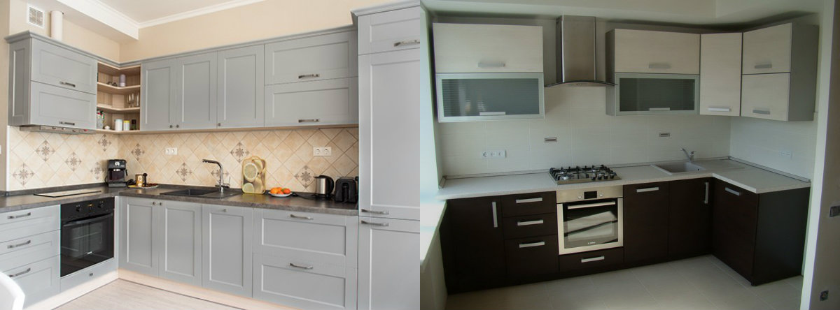 Здесь, как и раньше предпочтение отдается двум вариантам кухонь: