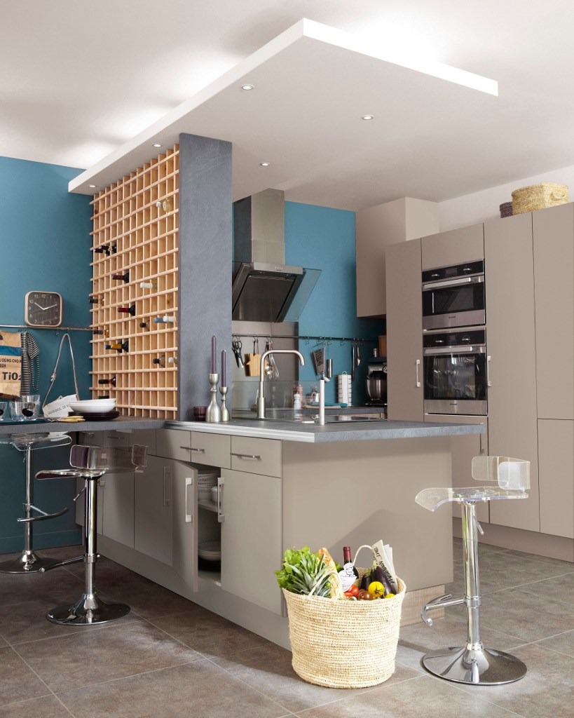 - Возводя перегородку между кухней и гостиной, подумайте об устройстве в ней ниш. Так вы обеспечите помещение ячейками для хранения сервиза, стекла, бакалеи, кулинарных книг, декора и прочих мелочей. Перегородку можно сделать как сквозной, так и односторонней.