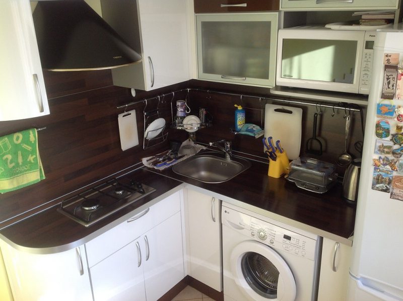 Не забывайте, что уместить на маленькой кухне всё, не представляется возможным. Ведь помимо техники необходимо пространство для оборудования рабочей зоны, а также для обустройства обеденного уголка. Несмотря ни на что, хороший дизайнер способен превратить в уютное гнёздышко даже не большую кухню площадью четыре-пять метров, встречаются даже кухни, оборудованные в лоджиях.
