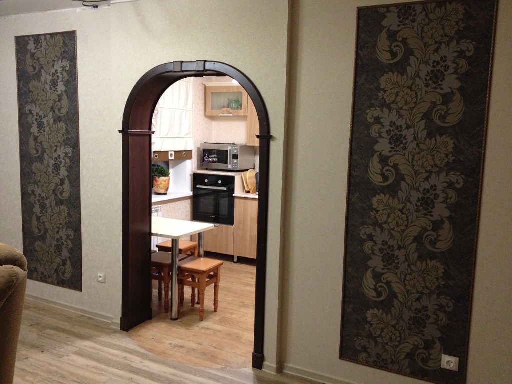 Визуально увеличить пространство поможет дверной проем — для этого его необходимо расширить, либо убрать дверь полностью, оборудовав на ее месте арочный проем.