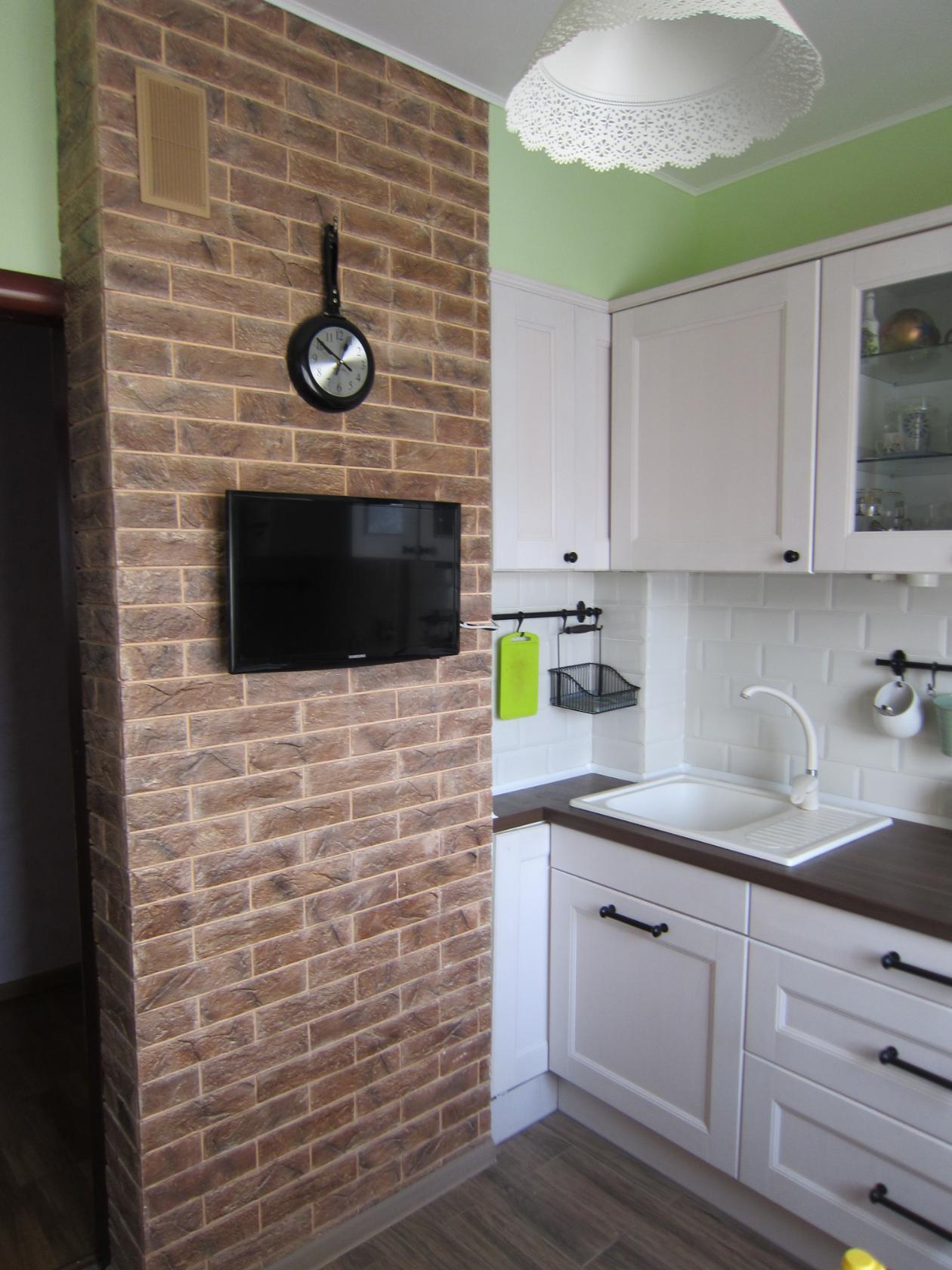 Можно сделать полочки на конструкции для размещения кухонных вещей. Если закрепить кронштейн, тогда появится место для телевизора.