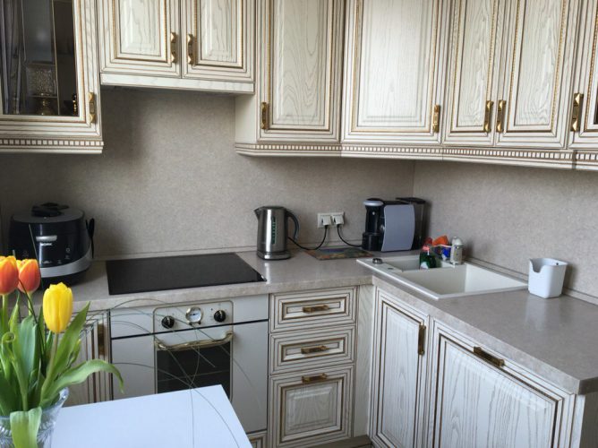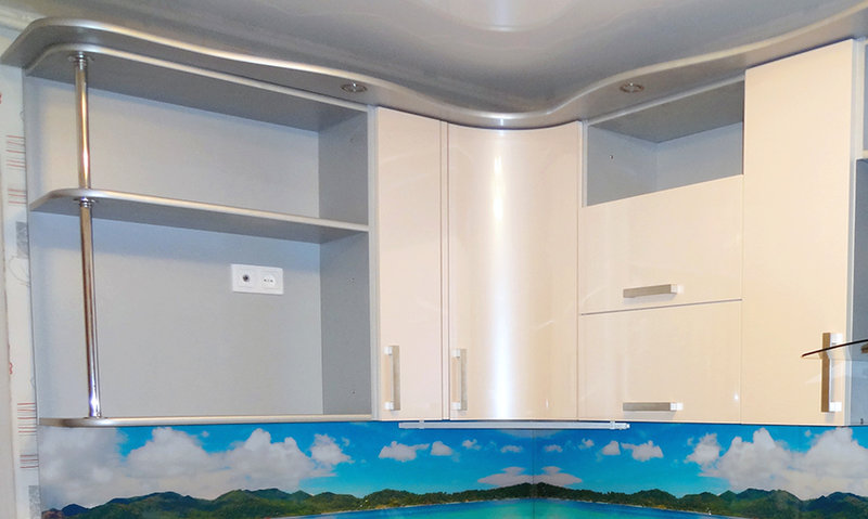 Если такое решение неприемлемо (скажем, из-за классического дизайна кухни), то в угол требуется изготовить нестандартный шкаф, спроектированный по замерам. Проектировать угловые шкафы с развернутой на определенный угол боковиной — это исключение из правил. Не факт, что тупой угол на кухне не окажется еще и «заваленным» по вертикальной плоскости. Тогда все усилия могут не дать желаемого эффекта, шкаф все равно «не встанет» ровно в угол. А подстраховаться на этот случай практически невозможно – особенно если при замерах само помещение было не пустым, а заставленным старой кухонной мебелью.