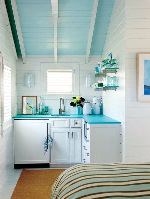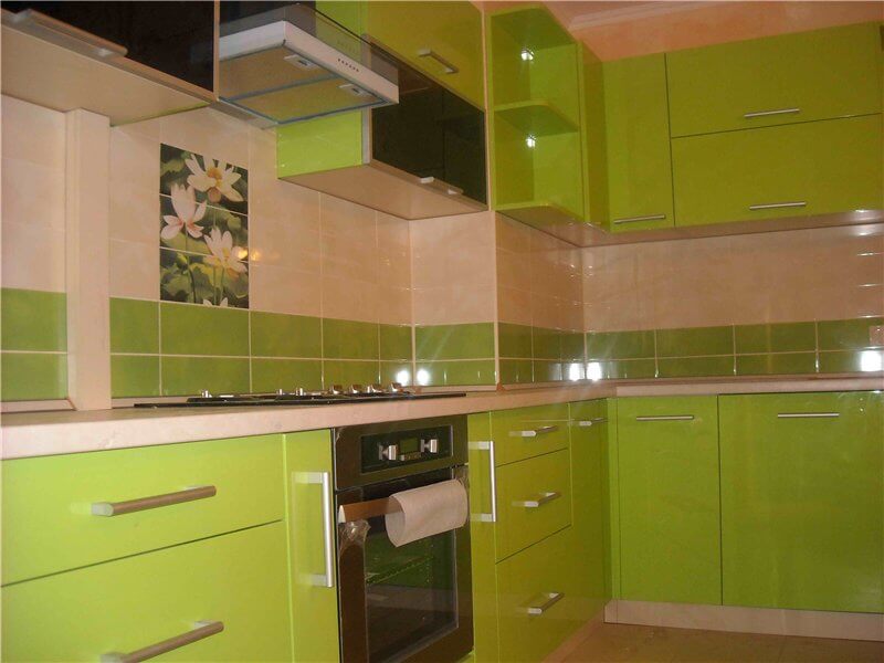 Для маленькой кухни действуют те же правила, что и для других небольших помещений. Так, холодные светлые цвета: белый, голубой, светло-зеленый – визуально увеличивают пространство и наполнят комнату воздухом. Любимые многими мягкие пастельные цвета теплой цветовой гаммы: персиковый, бежевый, желтоватый и кремовый – хоть и ощущаются уютно и по-домашнему, но могут утяжелить интерьер, в то время как наша задача – максимально ее расширить, хотя бы визуально.