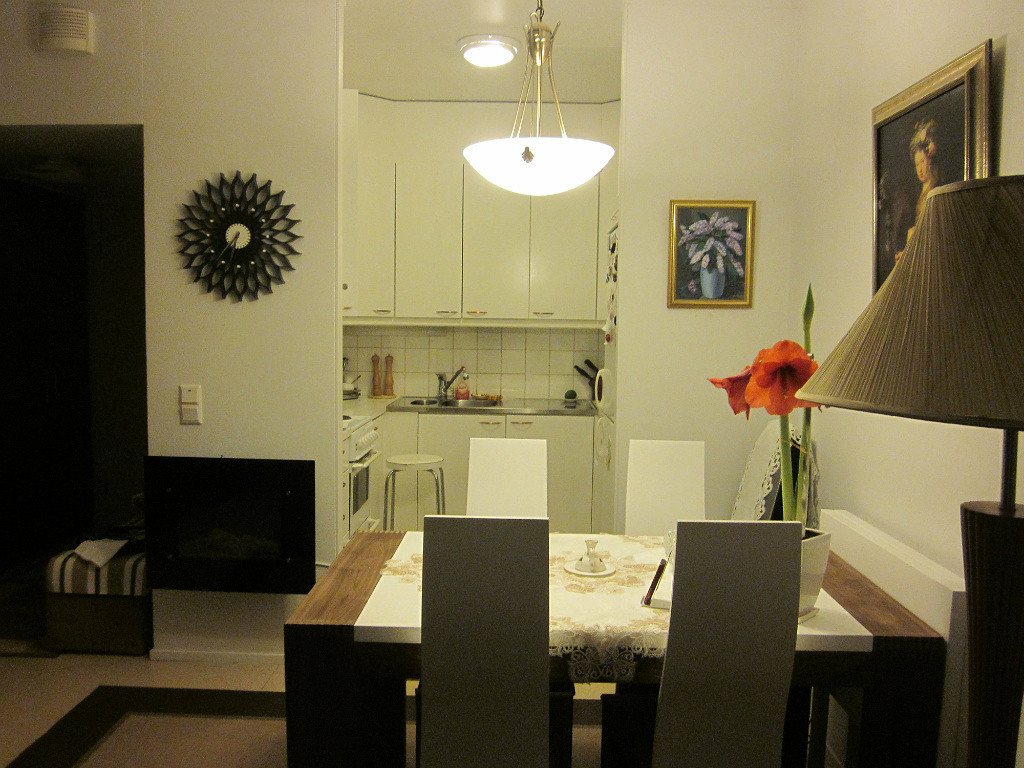 В идеале, ее лучше вообще вынести за пределы кухни, и обустроить столовую в гостиной.