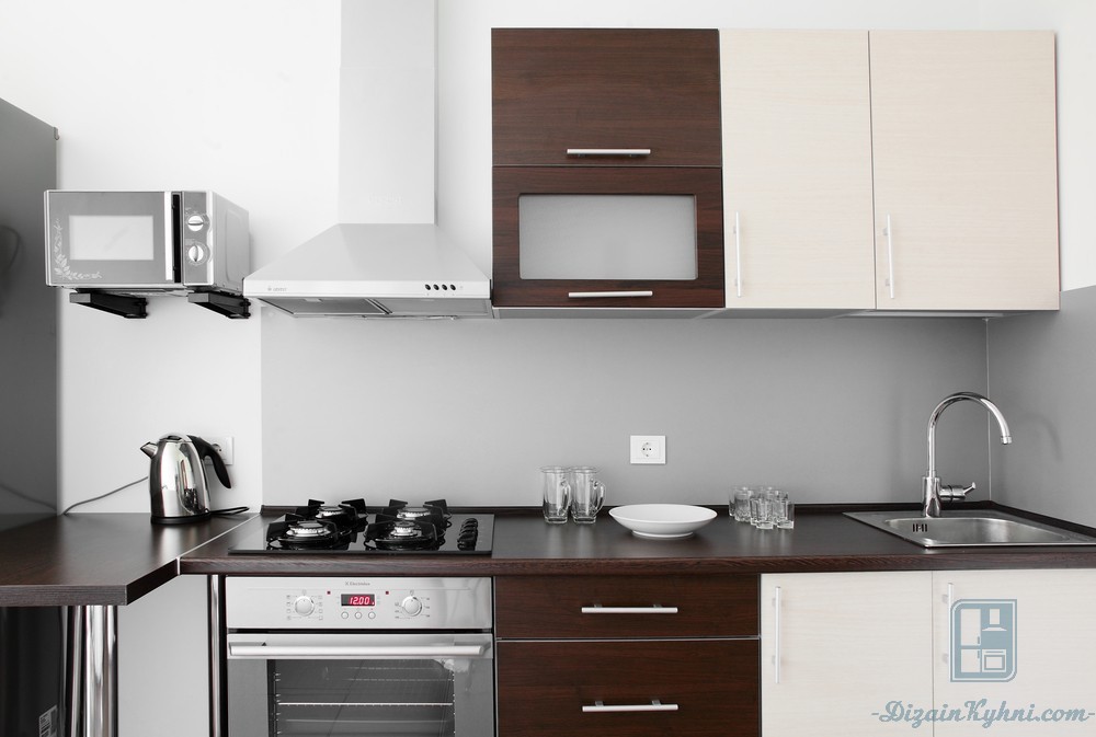 Также избегайте излишних деталей, аксессуаров, пестрых обоев и занавесок и всего прочего, что привлекает наш взгляд и рассеивает внимание. На кухне можно разместить зеркала (например, в виде зеркальных дверок на шкафах), которые оптически расширят комнату. Для дизайна маленькой кухни не подойдет насыщенный теплый цвет дерева, особенно темных пород