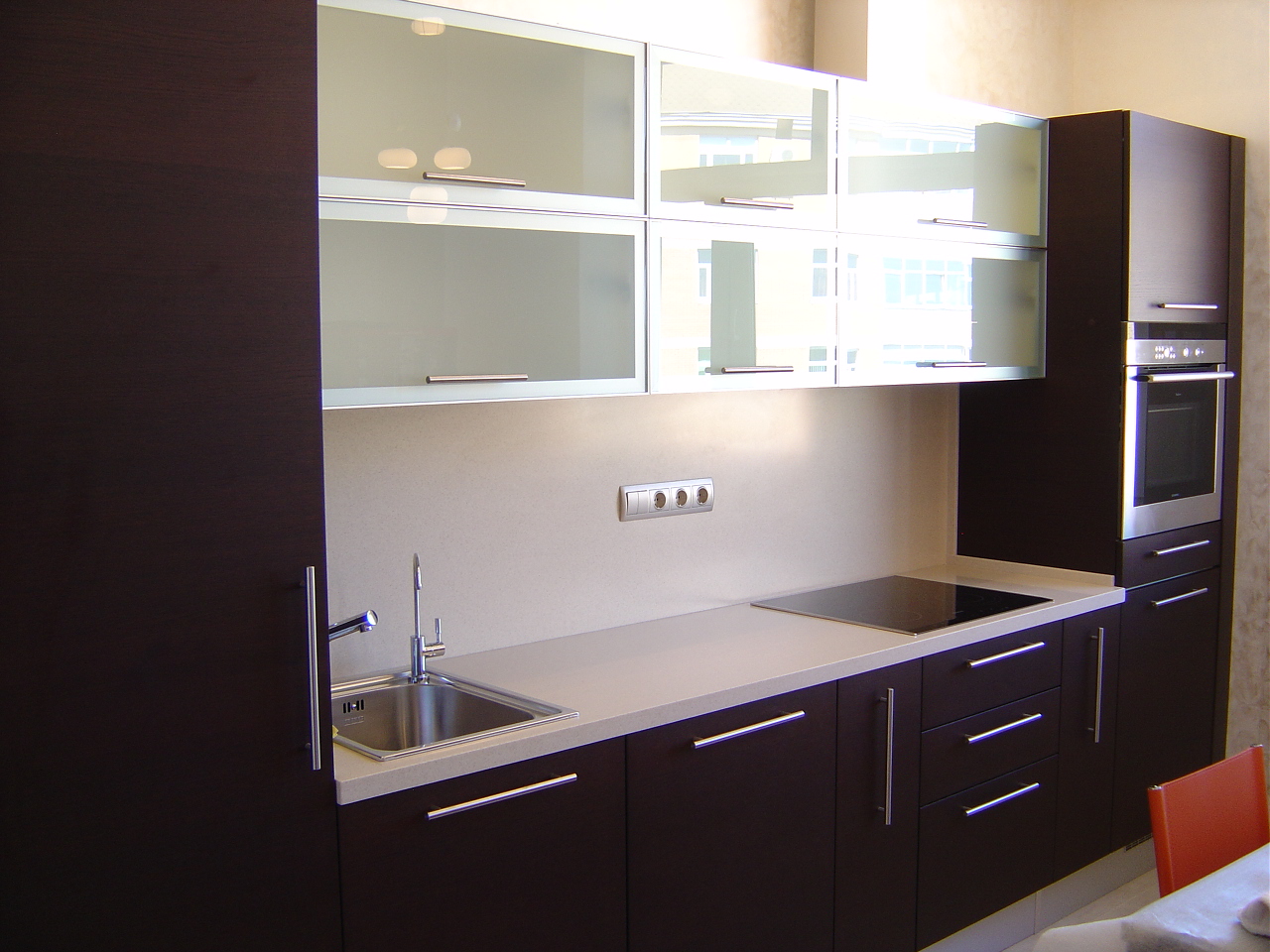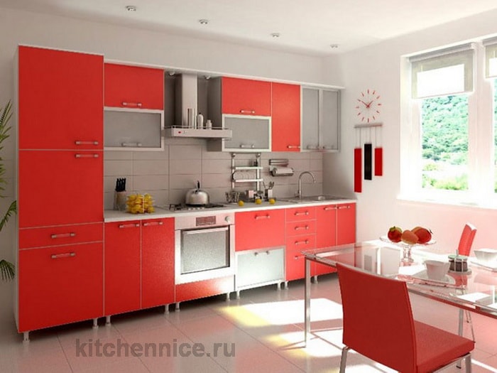 Прямолинейные кухонные гарнитуры являются наиболее дешевыми. Они изготавливаются без угловых компонентов, которые значительно влияют на стоимость изделия.