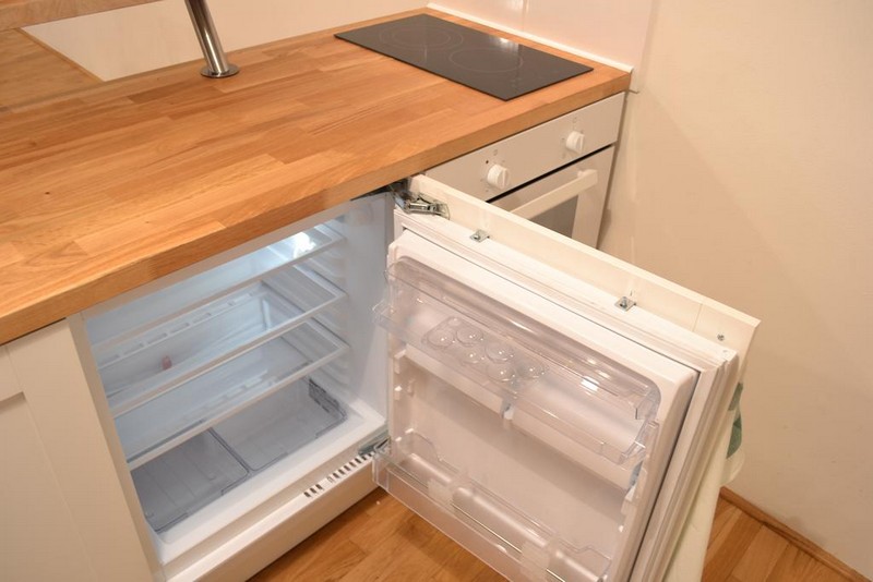 Есть также варианты совсем небольших встроенных холодильников, которые выглядят как небольшие шкафы. Это прекрасное решение для небольших семей. Если нет необходимости хранить дома большие запасы продуктов, то стоит задуматься о выборе именно такого мини-холодильника.