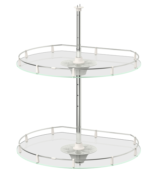 Угловое пространство в навесных шкафчиках вы сможете использовать с большей пользой, если приобретете удобную вращающуюся секцию с полками. Она обеспечит удобный обзор и быстрый доступ к содержимому.