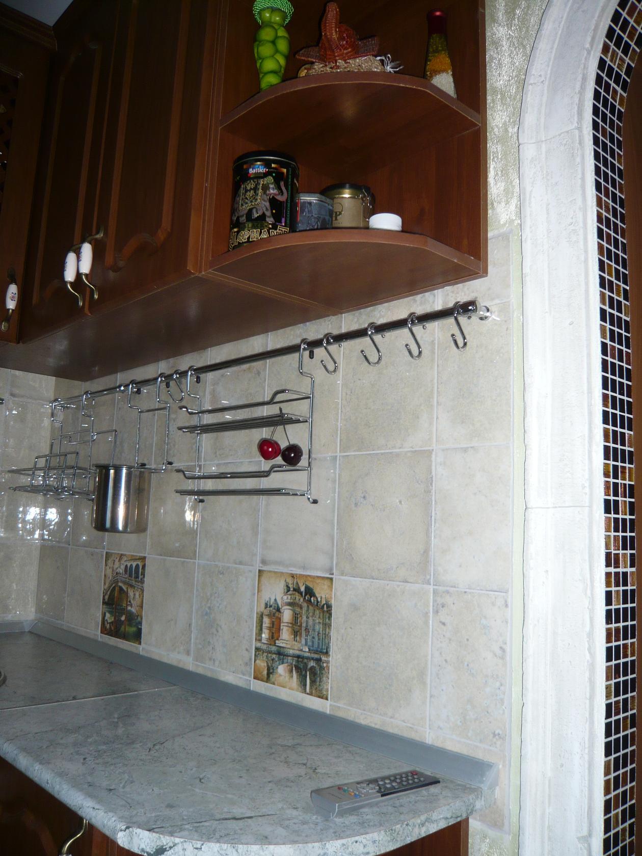 Над рабочей зоной следует разместить крючки для посуды, которая всегда должна быть под рукой.
