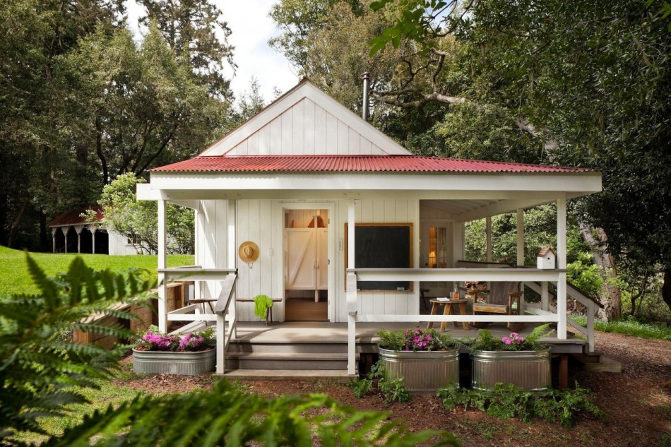 Чаще всего это дома в американском стиле, о которых поговорим ниже. Поскольку строительство дома 5х5 выполняется чаще всего для возведения летнего помещения, комната в нём служит для сна, а веранда — для отдыха на свежем воздухе.